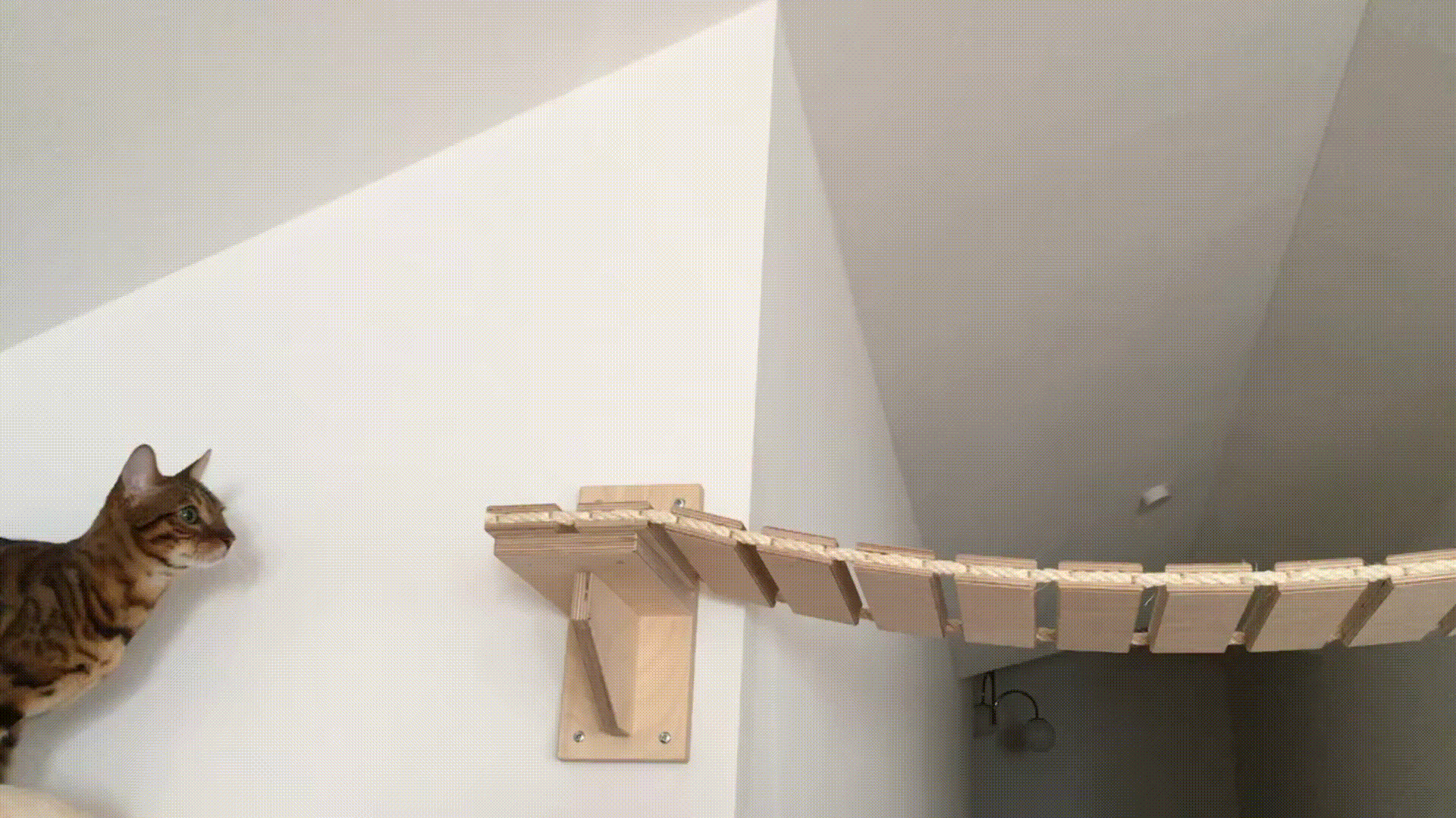 Mit der Hängebrücke von Goldtatze bringst du echtes Abenteuer in dein Zuhause. Sie lädt deine Katze zum Klettern, Balancieren und Erkunden ein – ein spannendes Erlebnis, das Beweglichkeit und Geschick fördert.