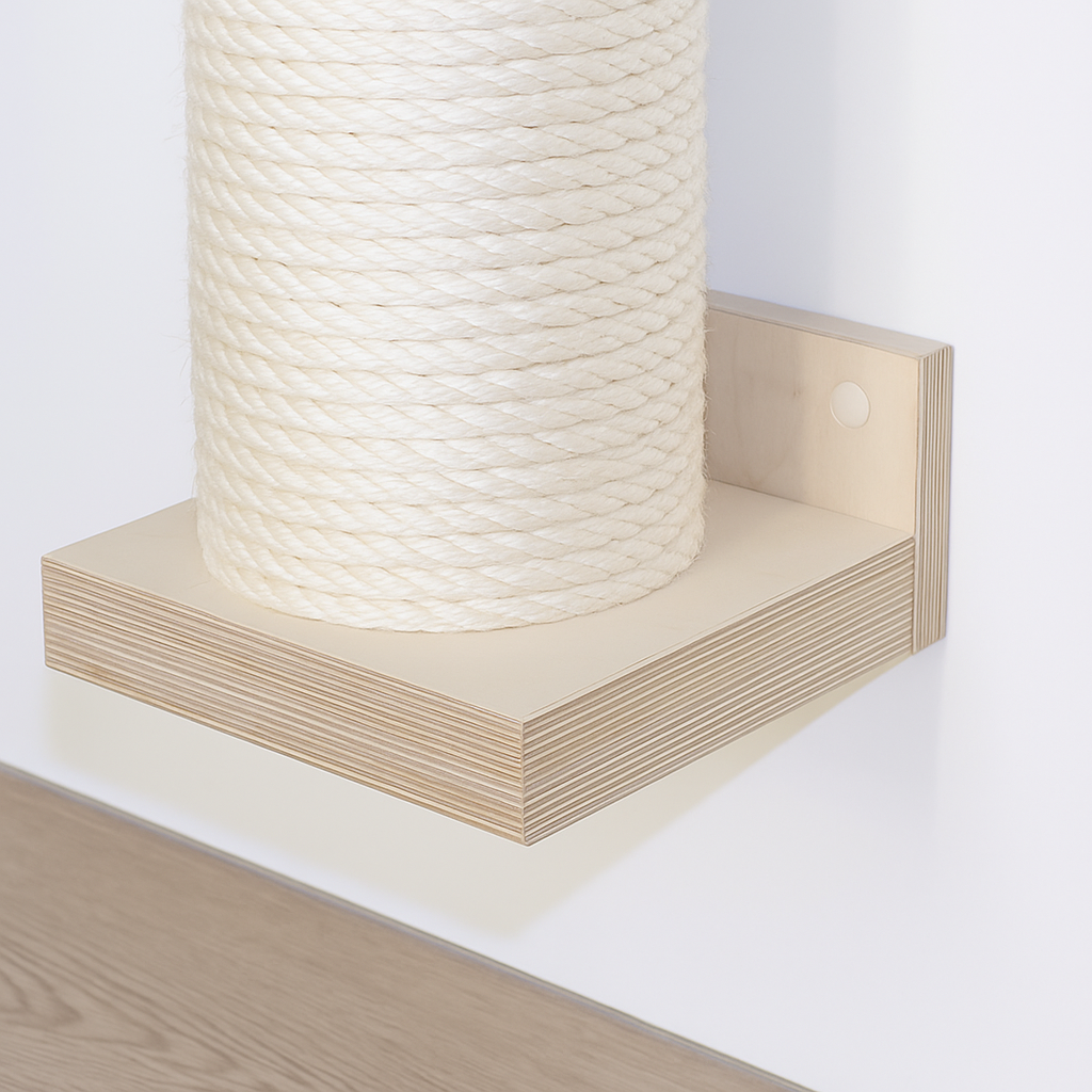 Die Wand-Klettersäule ist die perfekte Ergänzung zu deiner bestehenden Katzen-Spielwelt. Sie kann als Aufstieg zu einer unserer Hängebrücken dienen oder sich nahtlos in Möbel wie Schränke integrieren.